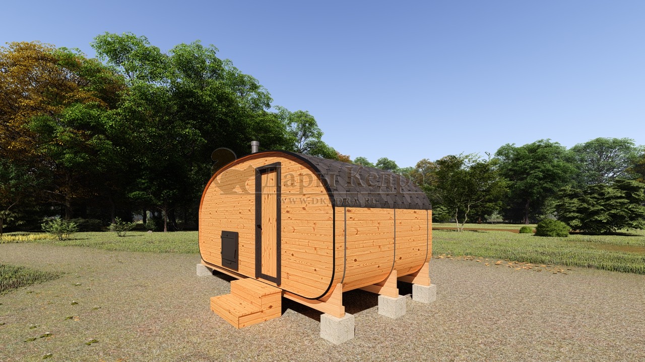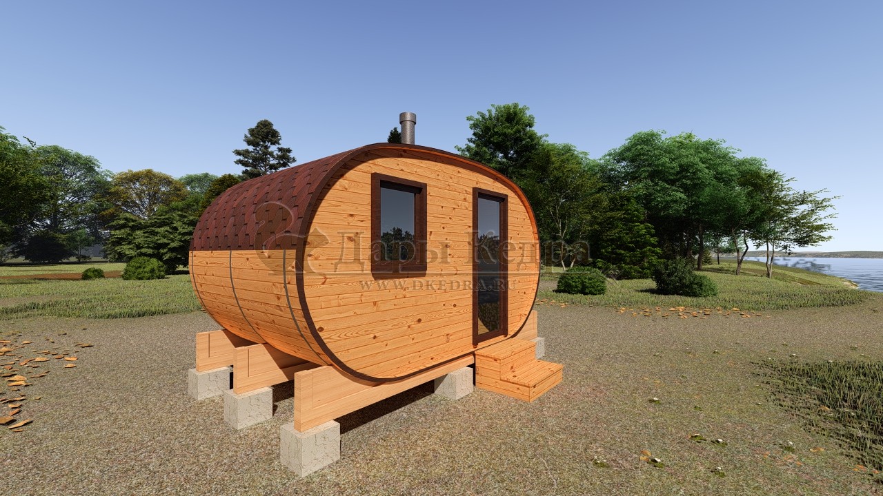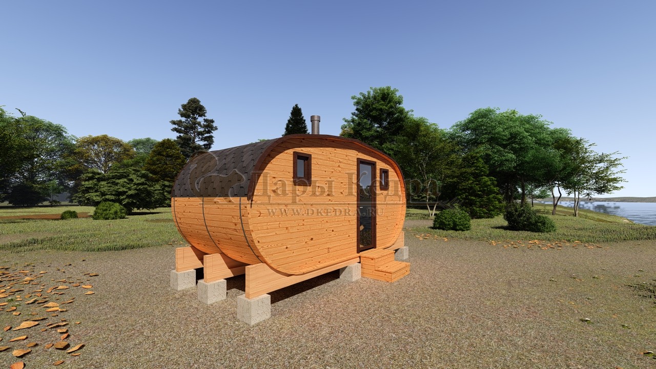 Баня-бочка представляет собой конструкцию в виде бочонка без углов. Такая форма считается оптимальной для равномерного распределения пара по всей внутренней поверхности парной. Таким образом, пар не скапливается в одном месте, а циркулирует по всему объему. Соответственно, круглая (квадратная, овальная) баня экономичная: топится быстро, требует дров мало.