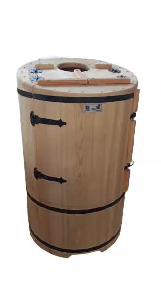Бондарная фитобочка имеет такое название, потому что выполнена по старинной технологии в шип-паз, без использования каких-либо иных дополнительных скрепляющих элементов. Производственное оборудования позволило для круглых бочек применить лунный паз глубиной 2.5 см, который имеет надежное прилегание досок друг к другу, скрепляя бочку плотно, не пропуская пар и имеет вид фаски. Кедровая Фитобочка - это мини парная, которую можно установить в квартире и каждый день использовать в домашних условиях. Настоящая лечебница для здоровья всей семьи. Во время парения человек сидит внутри кедровой бочки, а голова находится снаружи. Благодаря этому исключается перегрев и процедура парения комфортно переносится пожилыми людьми и детьми.