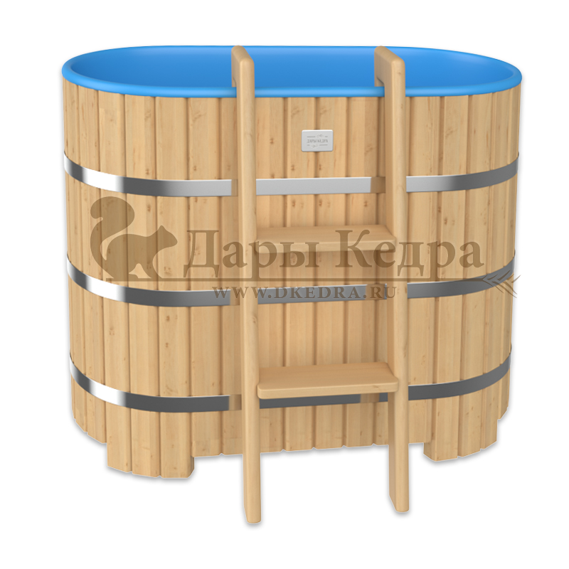 • Бондарная овальная купель из кедра с пластиковой вставкой Особенность этой модели заключается в сборке купели по технологии лунный-паз. Паз (углубление) одной доски прочно соединяется с выемкой следующей. Такая сборка осуществляется без клея и гвоздей. Готовая конструкция прочно фиксируется нержавеющими обручами. Пластиковая вставка придает изделию красивый внешний вид, увеличивает срок службы и облегчает уход за купелью. Для удобства пользования купель оснащена лавочками, приставной и внутренней лестницей из кедра. Подходит для комнатного и уличного использования. Купели с пластиковой вставкой рекомендуется заказывать для непрерывного использования в банных комплексах или оздоровительных центрах. Внутренняя чаша облегчает уход за изделием и увеличивает срок службы купели.