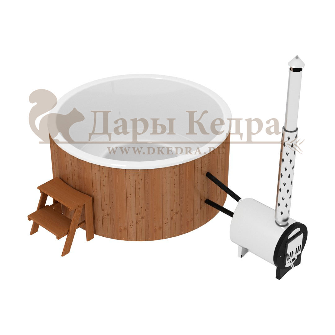 • Финская круглая композитная купель с подогревом (с печкой) «Премиум 220 40 квт» Это уличная подогреваемая купель с круглой внутренней чашей, которая изготовлена из современного прочного и термоустойчивого материала (композита). Форма чаши обеспечивает комфортную посадку во время принятия процедур. Для удобства пользования купель фурако оборудована приставной лестницей. Нагрев воды осуществляется за счет встроенной печи, которая находится внутри купели за перегородкой из кедра. В комплектацию этой модели входит савок с длинной ручкой, который позволяет извлекать угли после эксплуатации изделия. Композитная вставка придает купели красивый внешний вид, продлевает срок службы и облегчает уход за изделием. Парение на свежем воздухе – это отличный способ укрепить здоровье и поддержать организм в тонусе.
