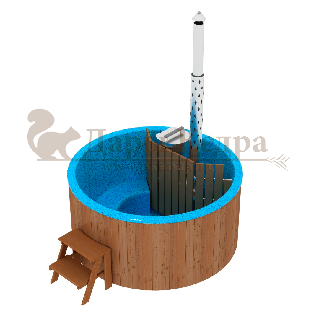• Финская круглая композитная купель с подогревом (с печкой) «Премиум 160 хот с печью 25 квт» Это уличная подогреваемая купель с круглой внутренней чашей, которая изготовлена из современного прочного и термоустойчивого материала (композита). Форма чаши обеспечивает комфортную посадку во время принятия процедур. Для удобства пользования купель оборудована приставной лестницей. Подогрев воды осуществляется внешней печью с дымоходом. Композитная вставка придает купели красивый внешний вид, продлевает срок службы и облегчает уход за изделием. Парение на свежем воздухе – это отличный способ укрепить здоровье и поддержать организм в тонусе.