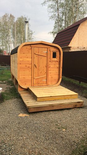 Баня бочка понравилась по модели, ни у кого из соседей такой нет! Дары Кедра привезли готовую и установили. Очень удобная и просторная оказалась, быстро нагревается и приятно пахнет деревом! Приезжаем попариться даже зимой! Спасибо за такую красоту, очень довольны!